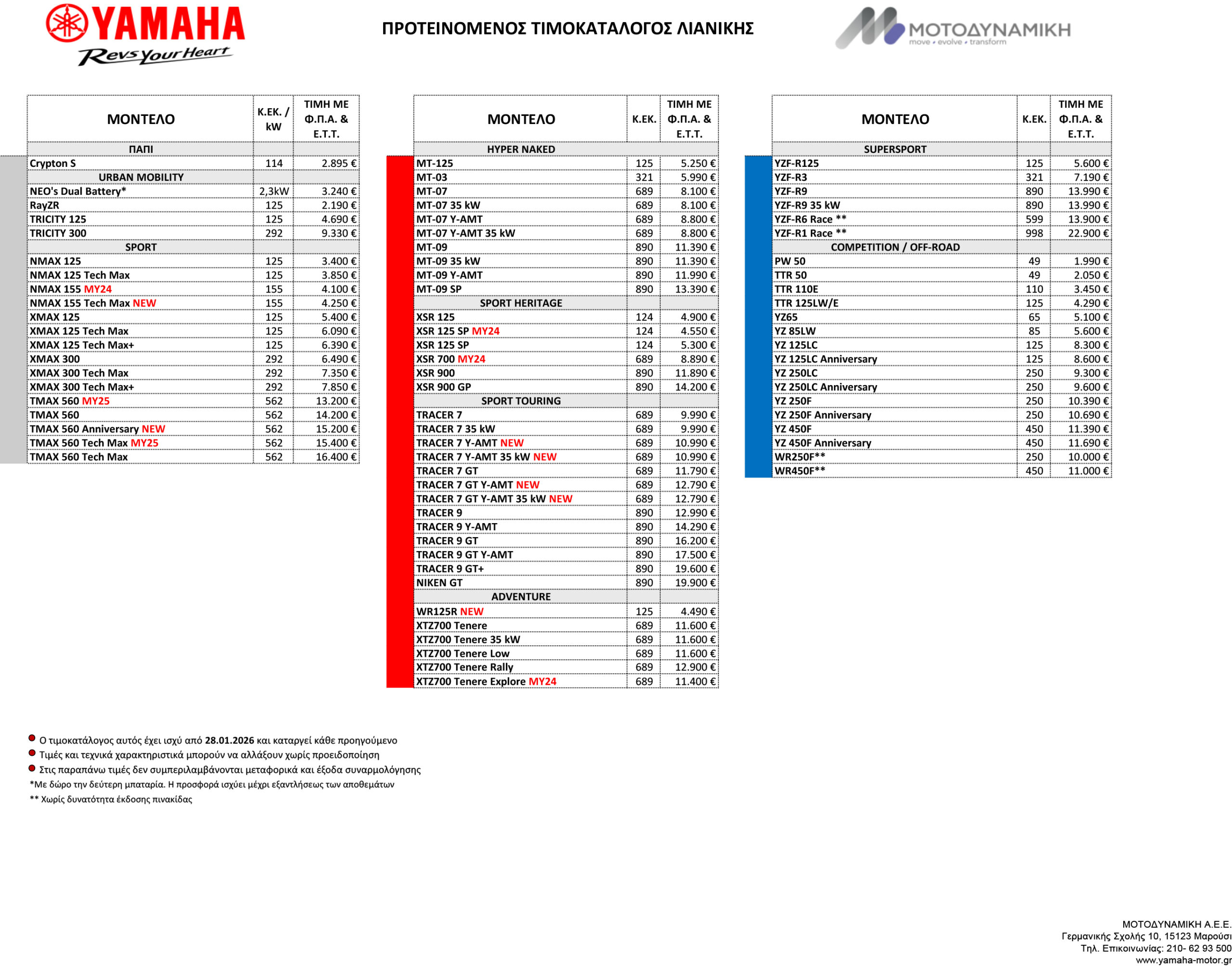 ΤΙΜΟΚΑΤΑΛΟΓΟΣ YAMAHA